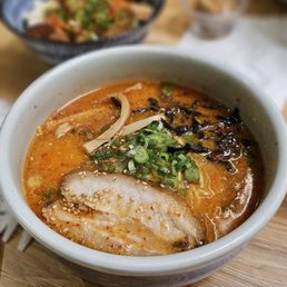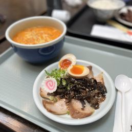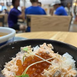 I decided to check out this spot in the food court after coming to Mitsuwa for Matcha Ren. I had the spicy miso ramen combo with the salmon iruka bowl and it was amazing! The spicy miso ramen had a hearty and flavorful broth that was rich with miso and a perfect spicy undertone. The salmon iruka bowl was also well-balanced with the flavor and texture of soft, flaky salmon complementing the salty roe beautifully. I would highly recommend this combo to anyone looking for a great meal at the food court.
